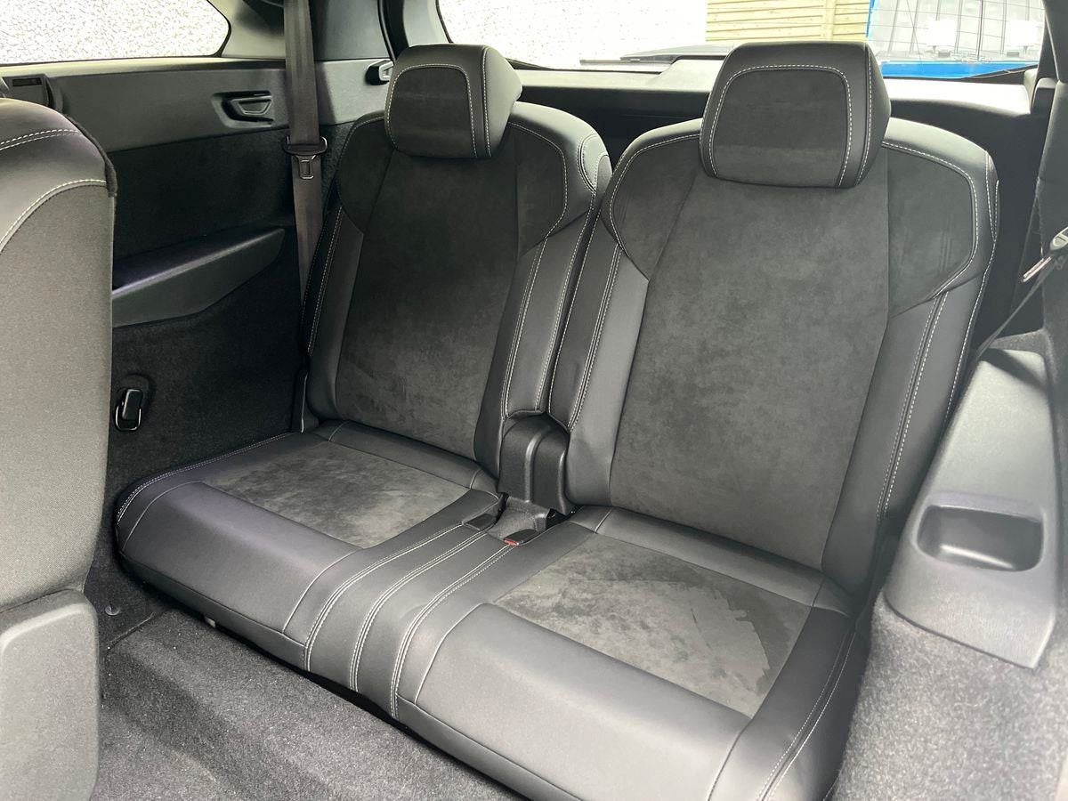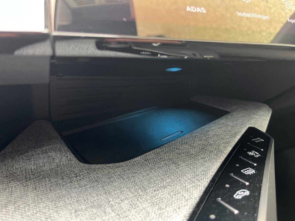 7 sæder, 3 faset opladning , 20" Alufælge, Bakkamera, Nøglefri adgang og start, Navigation, Musikstreaming via bluetooth, Multifunktionsrat, Fartpilot adaptiv, Fjernbetjent centrallås, Klimaanlæg 2-zoner, Parkeringssensor for/bag, Open & Go nøglefri betjening , Mørktonede ruder bag, Appel carplay trådløs, Automatisk op-/nedblænding, Bluetooth, DAB radio, Digital instrumentering, El-bagklap, El-håndbremse, Elruder for/bag, Regnsensor, Radio, Servo, Sædevarme for, Touch skærm, Trådløs mobilopladning, Udvendig temperaturmåler, Varme i rattet, USB-C tilslutning, LED kørelys, Tagræling, Tonede ruder, Alcantara indtræk, Armlæn, Højdejusterbart førersæde, Højdejusterbart passagersæde, Læderrat, Multijusterbart rat, Mørk loftbeklædning, One Pedal Drive, Splitbagsæde, Antispin, Automatisk Fjernlys (High Beam Assist), Automatisk katastrofeblink ved nødopbremsning, Automatisk nødbremsesystem, Dæktrykssensor, ESP, Isofix, Selealarm, Skiltegenkendelse, Træthedsregistrering, Vejbaneassistent, Full pixel LED forlygter